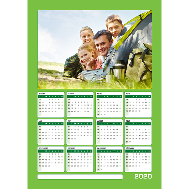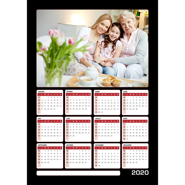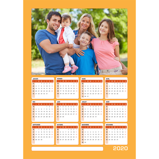 Ce calendrier annuel est imprimé sur du papier photo de haute qualité et collé sur un support magnétique souple. Adhère à toute surface métallique.